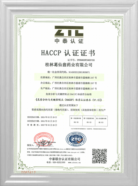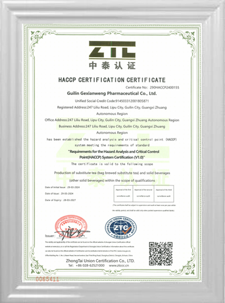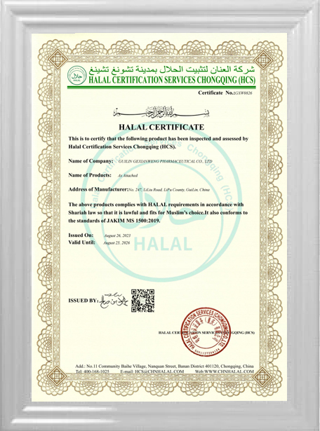Guilin Gexianweng Pharmaceutical Co., Ltd. was established in 1985 and is a joint-stock enterprise that produces pharmaceuticals and health foods in a diversified manner. Existing granules, tablets, capsules, powders and pills are present. There are many modern production lines such as syrup and oral solution, which have implemented a good production quality assurance system and have continuously passed GMP certification and HACCP certification. In 2022, it was named 'Guilin time-honored brand' enterprise