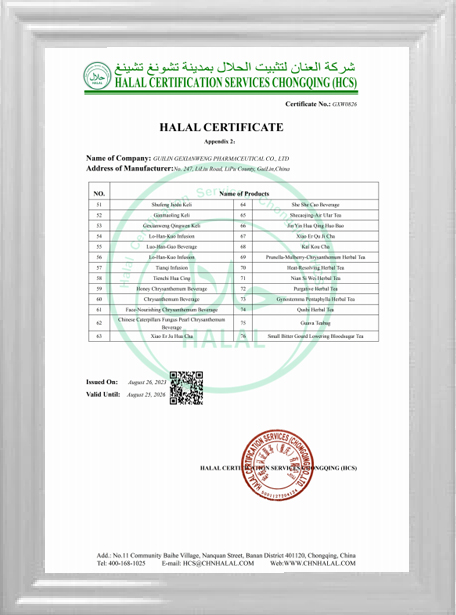 Guilin Gexianweng Pharmaceutical Co., Ltd. was established in 1985 and is a joint-stock enterprise that produces pharmaceuticals and health foods in a diversified manner. Existing granules, tablets, capsules, powders and pills are present. There are many modern production lines such as syrup and oral solution, which have implemented a good production quality assurance system and have continuously passed GMP certification and HACCP certification. It was rated as a 'Guilin time-honored brand' enterprise in 2022.